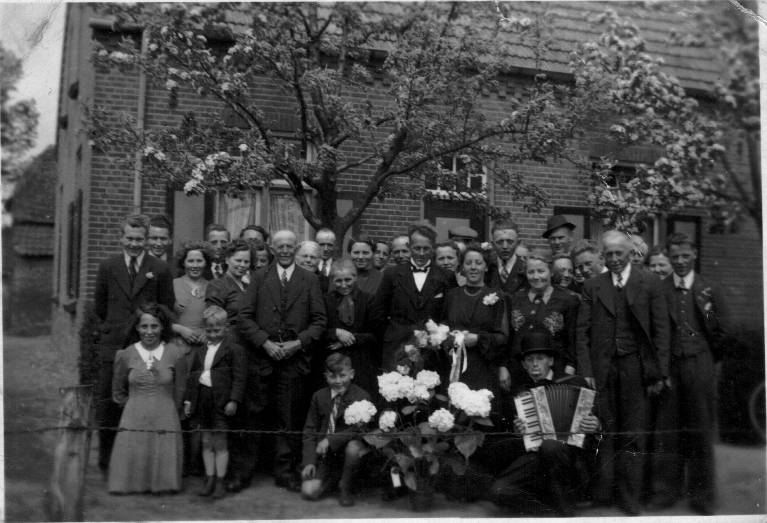 Trouw dag 2 5 1944 Marinus Vereyken en Elisabeth van Vijfeijken met ouders Peters Vereyke en Caatje v dBoogaard en ouders Lies Laurens van Vijfeyken en Hanneke Verbakel kinderen broers en zussen Marinus Andries Johan Mariedje en Drika broers en zussen Lies Theder Piet Harry en Frits Anna Fransien en Fien.