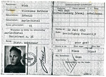 repro, 12-06-1943, arbeidsdienst, Ontslagbewijs Nederlandse Arbeidsdienst van Wim Wich