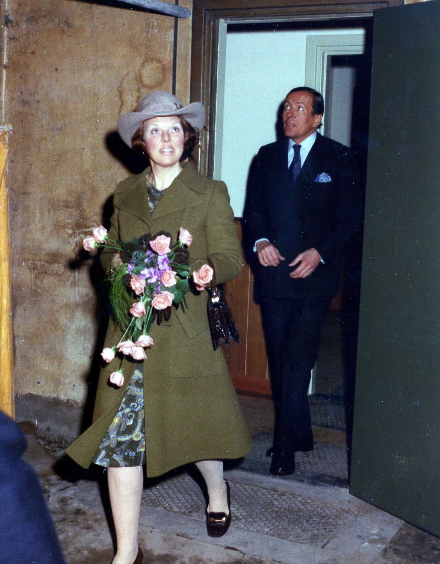 Origineel, Collectie Petit en Fritsen, 17-01-1975, Bron gemeente Aarle-Rixtel, Feestelijkheden ter gelegenheid van de Libertybell in aanwezigheid van prinses Beatrix en prins Claus, prinses Beatrix en prins Claus betreden de fabriek. Arch ja