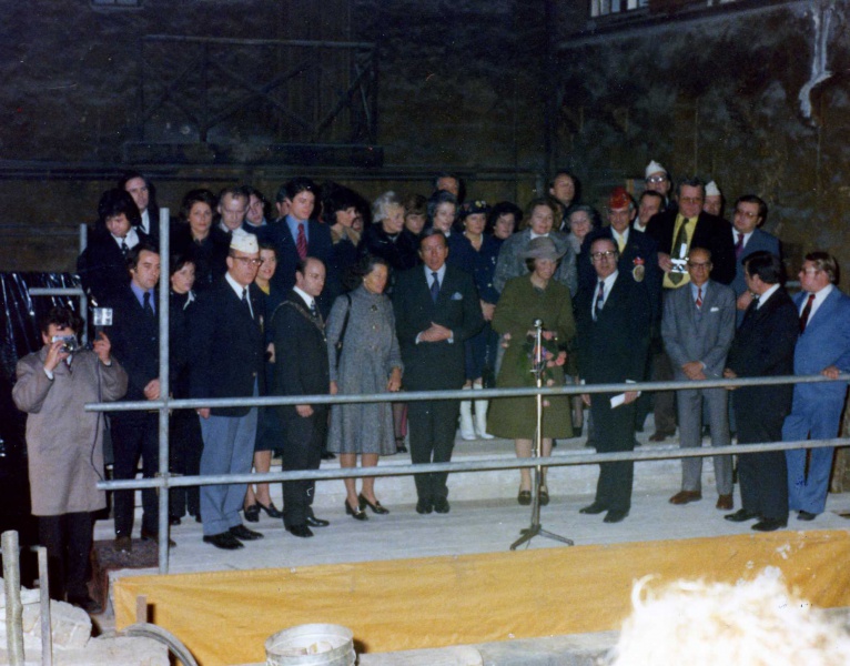 Origineel, Collectie Petit en Fritsen, 17-01-1975, Bron gemeente Aarle-Rixtel, Feestelijkheden ter gelegenheid van de Libertybell in aanwezigheid van prinses Beatrix en prins Claus, Het prinselijk paar temidden van diverse Nederlandse en Amerikaanse autoriteiten en persmensen tijdens het gietproces van de Libertybell . Arch ja
