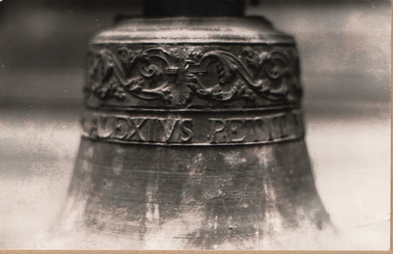 Origineel, collectie Petit en Fritsen, 00-00-1980, foto genomen in 20ste eeuw, inventaris familie Petit, Foto van bronzen luidklokje 29,50 Centimeter doorsnede en 25 Kilogram, gegoten door Alexius Petit uit Someren op 34 jarige leeftijd in 1754. Arch. JA