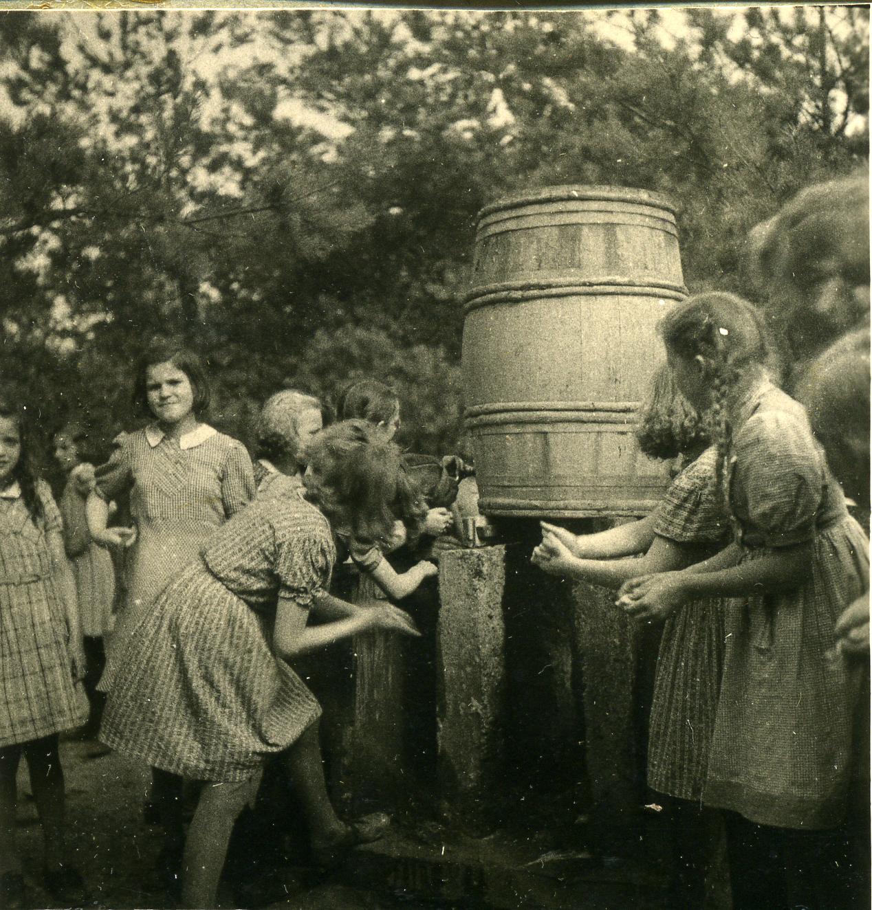 Mariëngaarde. Omschrijving; Activiteiten, St. Jozefspeeltuin. Picknick, pensionairen bij de drinkton.
