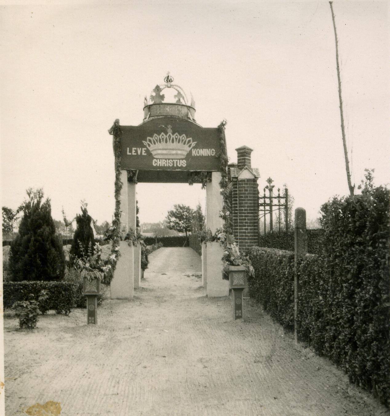 Mariëngaarde; Omschrijving; Sacramentsprocessie; Triomfboog; "leve Christus Koning, in de tuin van Mariëngaarde.