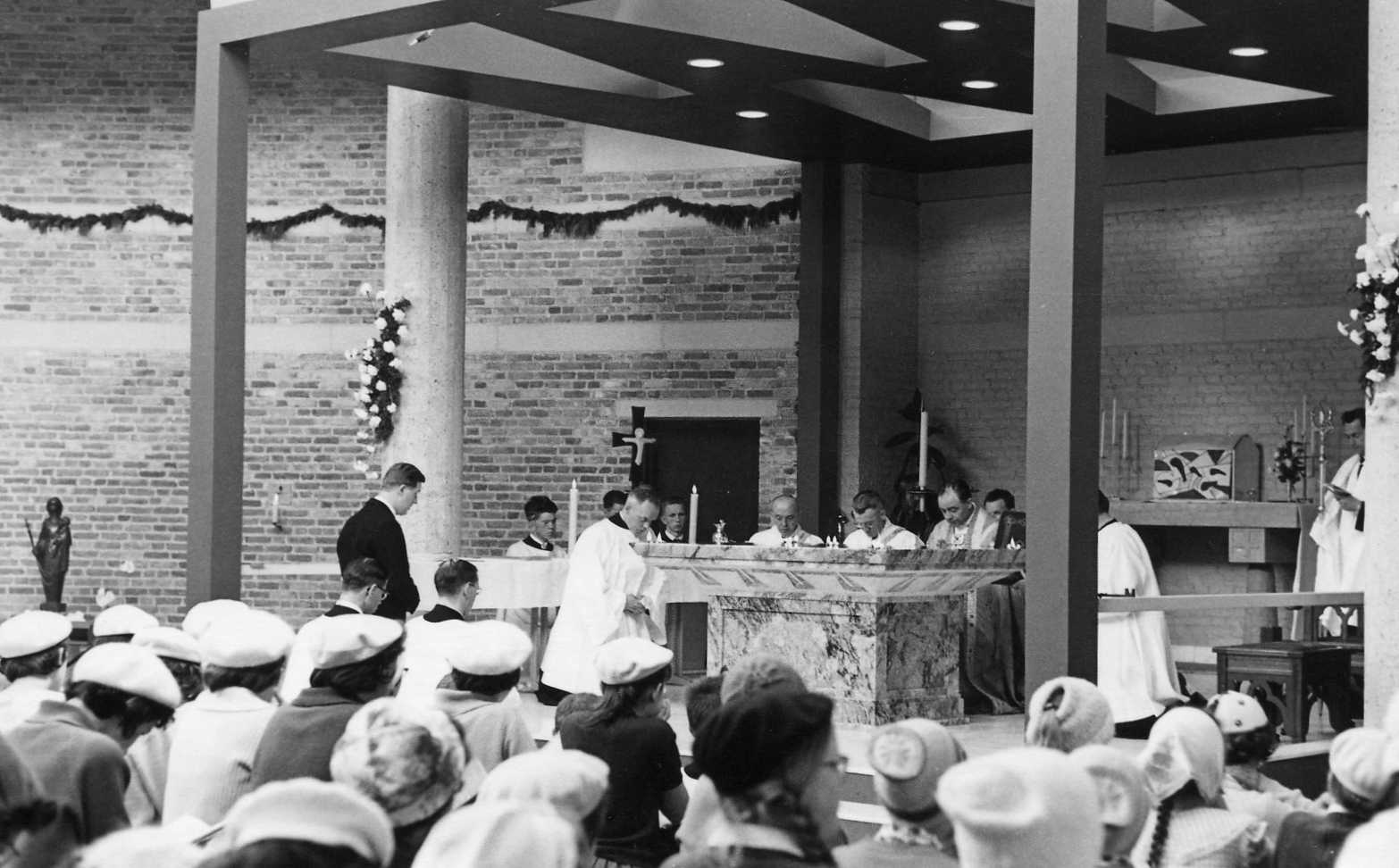 Mariëngaarde. Omschrijving; Nieuwe kapel, inwijding. Tijdens de H. Mis.