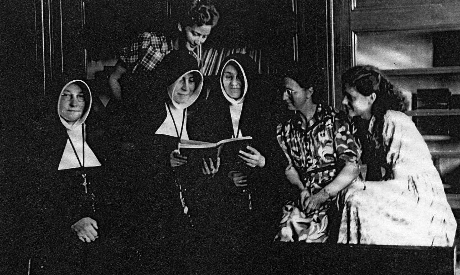 Personeel meisjesschool: v.l.n.r.: Zr. Elise, Zr. Willibrod (hoofd), Zr. Christa (handwerkzuster), Juffr. Verberne, Juffr. van de Ven, Juffr. Verbakel