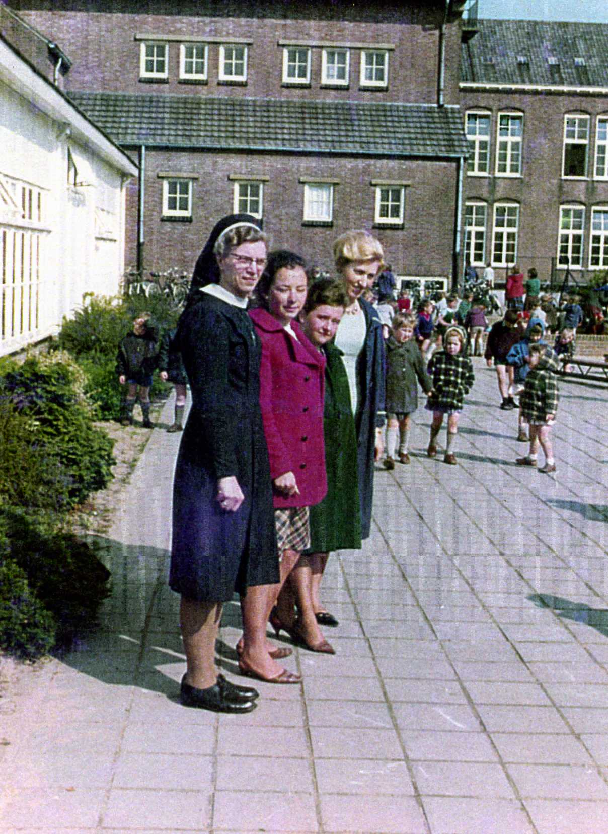 omschrijving v.l.n.r.: Zr. Elise, juffr. Juul Ebben, juffr. Antoinette van de Heuvel, juffr. Trees van Zutphen