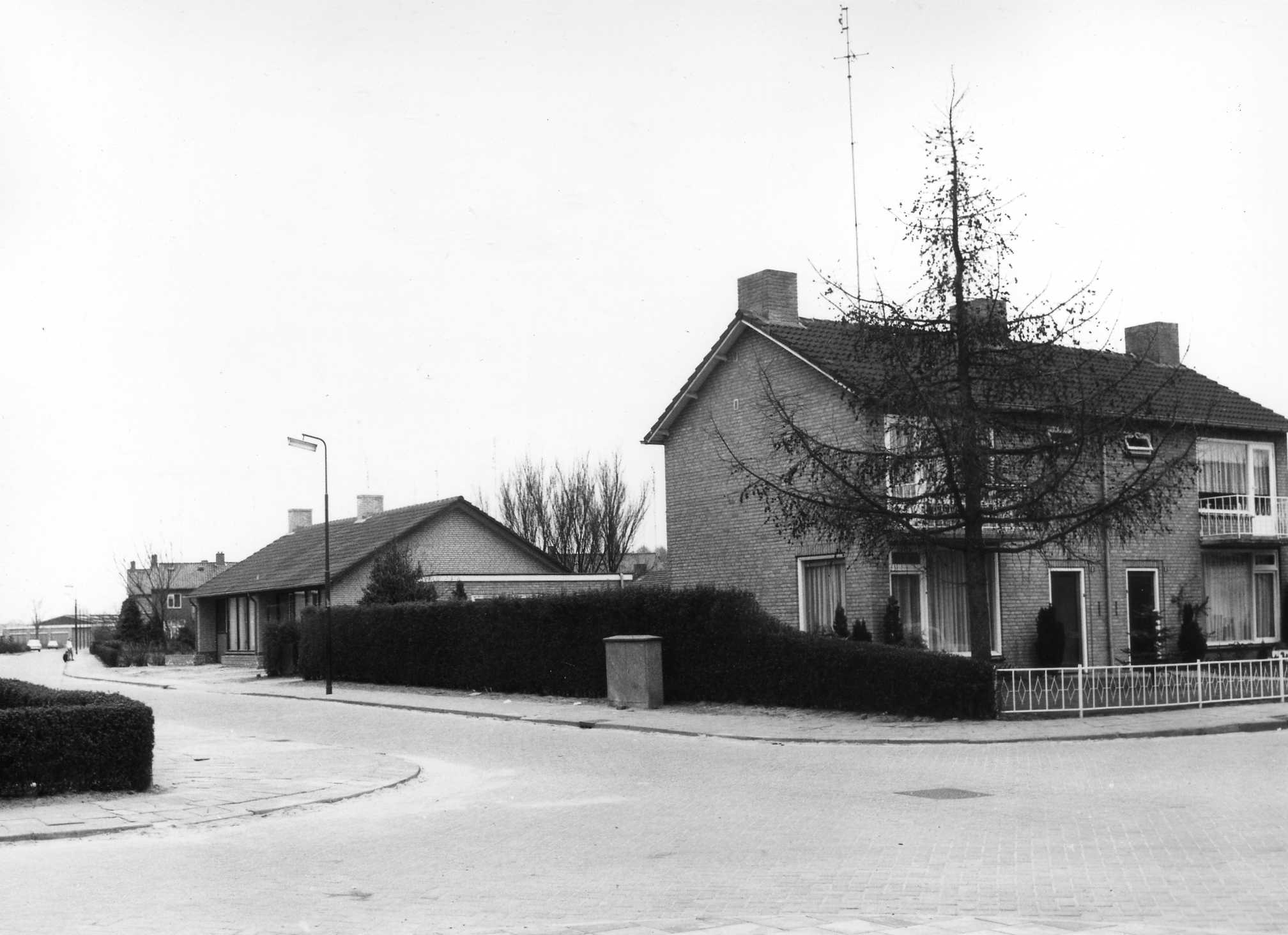 Hoek Nachtegaalstraat-Lijsterstraat met links de in februari gereed gekomen woningen voor onvolkomen gezinnen, dit waren de eerste twee woningen in Aarle-Rixtel.