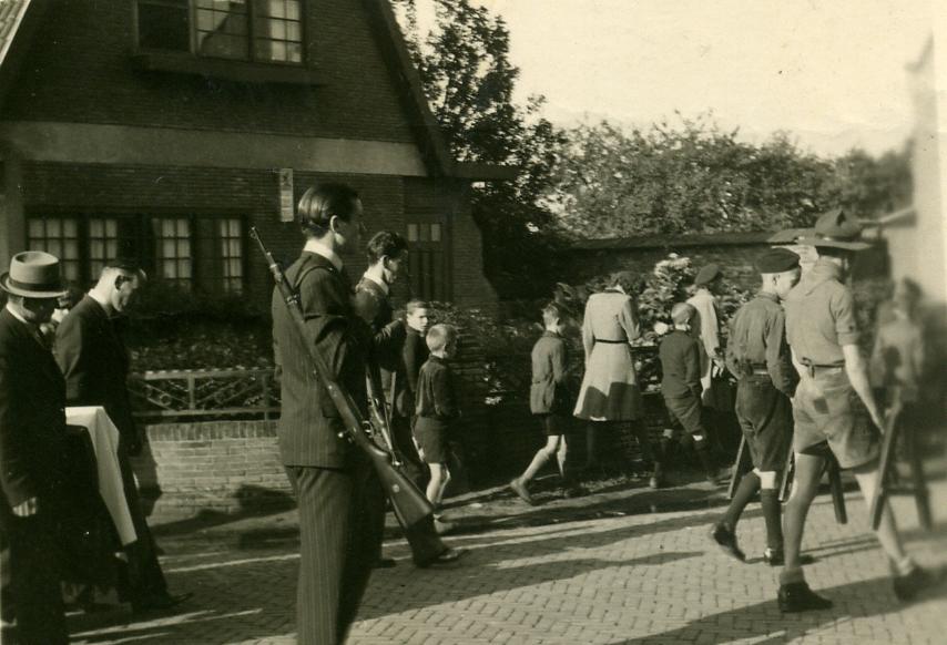 Origineel, 1944-10-00, tweede wereld oorlog, Begrafenis van Henk Jansen, met geweer Piet Beniers Oktober 1944