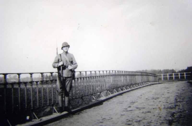 Repro, 00-00-1940, mobilisatie voor tweede wereld oorlog, Bewaking brug over het Wilhelminakanaal (Het Laar). Soldaat Coopmans op de laarbrug (boogbrug).