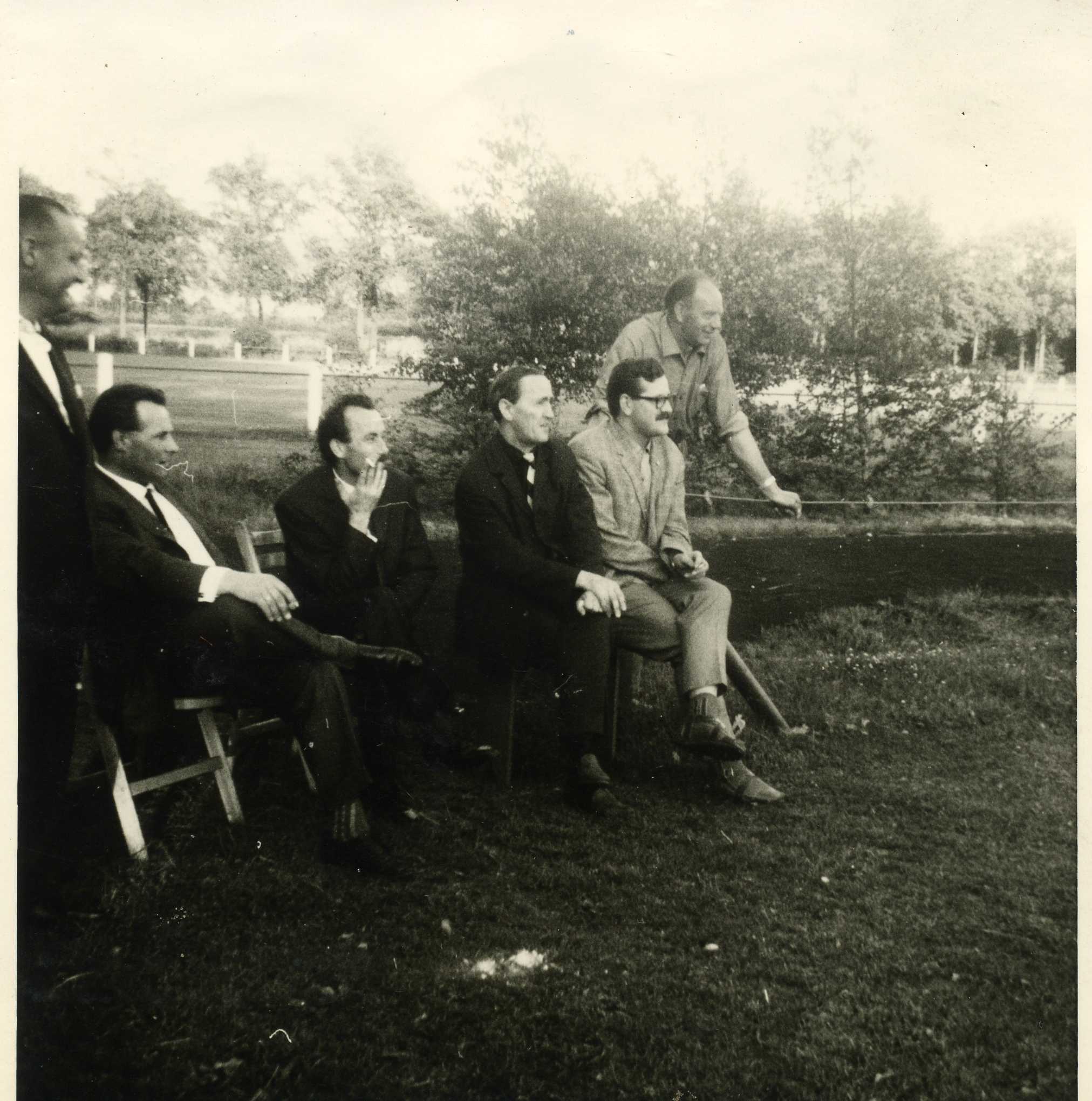 v.l.n.r.: Broer van Brug (staand), zittend: Gijs van Wetten, Klaasan Griensven, Pieter Swinkels en Piet van Wetten. Daarachter staand Jan Pennings